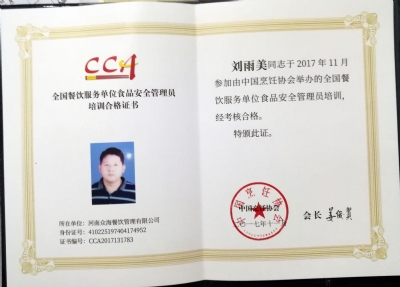 • 18-02-10熱烈祝賀河南眾海餐飲管理有限公司榮獲中國飯店協會團餐委員會委